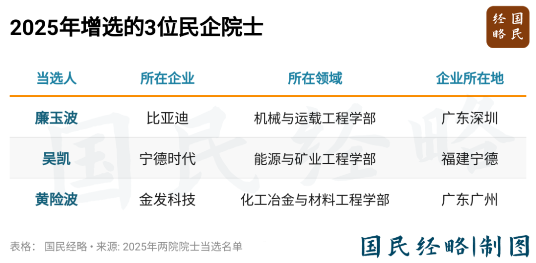 更为瞩目的是,新一届院士增选,全国共有3位民企科学家入围,数量创新高,比亚迪、宁德时代、金发科技在列。