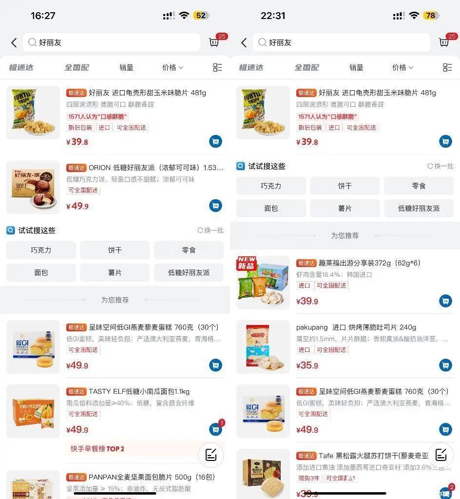 7月16日,南都湾财社记者走访广州番禺一家山姆会员店时,并未在货架上看到“低糖·好丽友派”,工作人员告知,该款产品已经下架,下架原因不清楚,暂时也不知道是否会重新上架,何时会重新上架,而卫龙、盼盼、徐福记、泸溪河、溜溜梅等产品则仍在货架上,其中卫龙的“高纤牛肝菌魔芋”仍被摆在超市过道较显眼的位置。而在前一日(7月15日),记者走访广州天河一家山姆会员店时,“低糖·好丽友派”仍然在正常售卖,店员告知该款产品上架仅有几天。